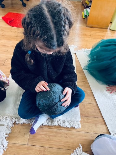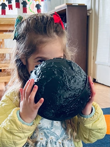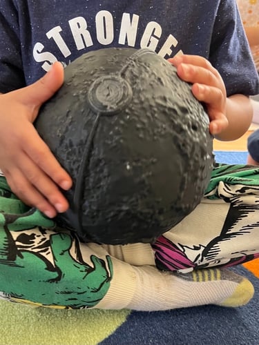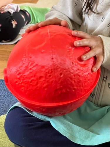 The results, even with the little ones, were beautiful. Some hugged the Moon or Mars; others imagined stories while “walking” across their surfaces with their fingers and hands. They felt the textures, explored the object, invented stories, breathed. At the end, with another deep breath, they “returned” to Earth by opening their eyes or taking one last jump. This opens the door to talking about the universe—to questioning, wondering, and imagining that everything is possible.